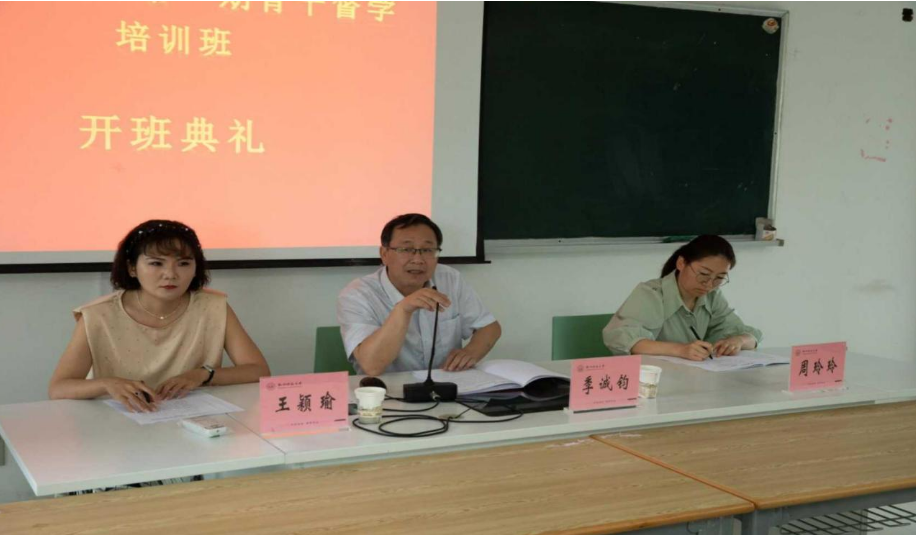 6 月 11 日上午 8:30,团队30人齐聚恕园6号楼 204 教室,举行了开班仪式。仪式由培训班班主任柴春霞老师主持,蘑菇视频 季诚钧教授在致辞中对前来培训学习的学员们表示热烈的欢迎。阿克苏市教科局党组成员、专职督学王颖瑜在会上代表全体学员发言,对蘑菇视频 、阿克苏地区教育局搭建的交流平台,提供的学习机会表示感谢,并代表各学员对此次培训表态:一是珍惜机会,认真学习,通过专家讲座、参观学习等途径,不断提高业务能力;二是及时交流,共同研讨,充分利用互动交流学习平台,学习先进的督导方式,解决实际督导工作中遇到的困惑和疑难;三是不断反思,积累智慧,认真总结提炼,在学习中收获,提升督学水平,做一个真正懂行的教育督导人。