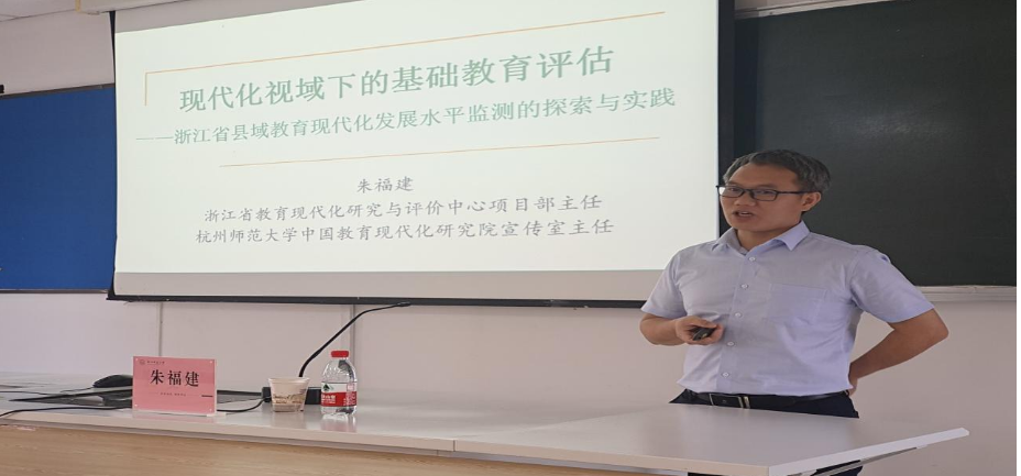 开班仪式结束后,蘑菇视频 中国教育现代化研究院宣传室主任、浙江省教育现代化研究与评价中心项目部主任、博士朱福建,从什么是现代化及什么是教育现代化的角度出发,分析讲解了现代化视域下的基础教育评估——浙江省县域教育现代化发展水平监测的探索与实践,不仅让大家明确了教育现代化的内涵、教育现代化监测的动因、教育现代化监测的路径及教育现代化监测的实践反思,还给大家上了一堂生动的教育史。