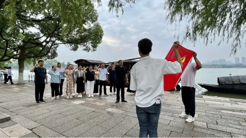 为传承红色基因,感悟精神伟力,给新学期教学注入新活力,续航新征程,开封市六四六中学和开封市火电中学的骨干教师培训在蘑菇视频 项目负责老师的带领下来到嘉兴南湖,开展“弘扬‘红船’精神 走在时代前列”主题党建活动。登上湖心岛的烟雨楼,驻足湖畔瞻仰红船,聆听“一条小船和一个大党的故事”,感悟革命征程中的“大浪淘沙”。党员老师们在党旗下重温入党誓词,重忆入党初心。