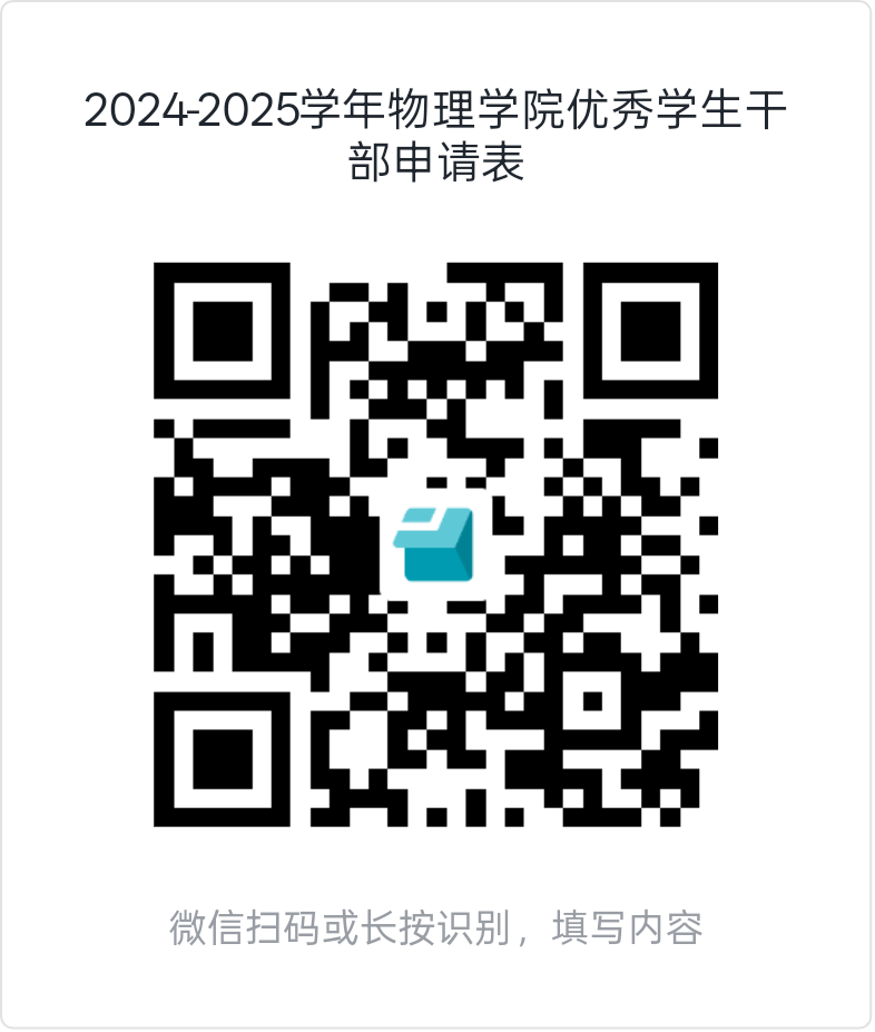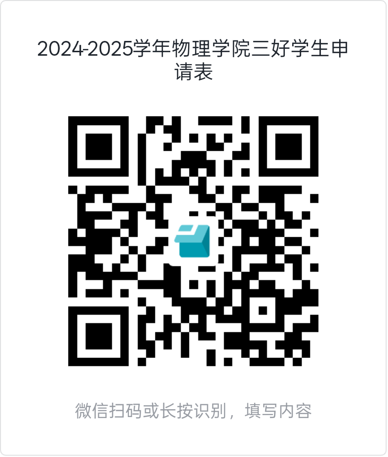 请同学们通过对应的电子表单链接进行申请,电子表单链接将由各班综测评议组组长发送至班群,或直接扫描下方二维码。三好学生申请截止时间:9月30日12:00,优秀学生干部申请截止时间:9月30日20:00。请同学们务必注意截止时间,逾期不候。