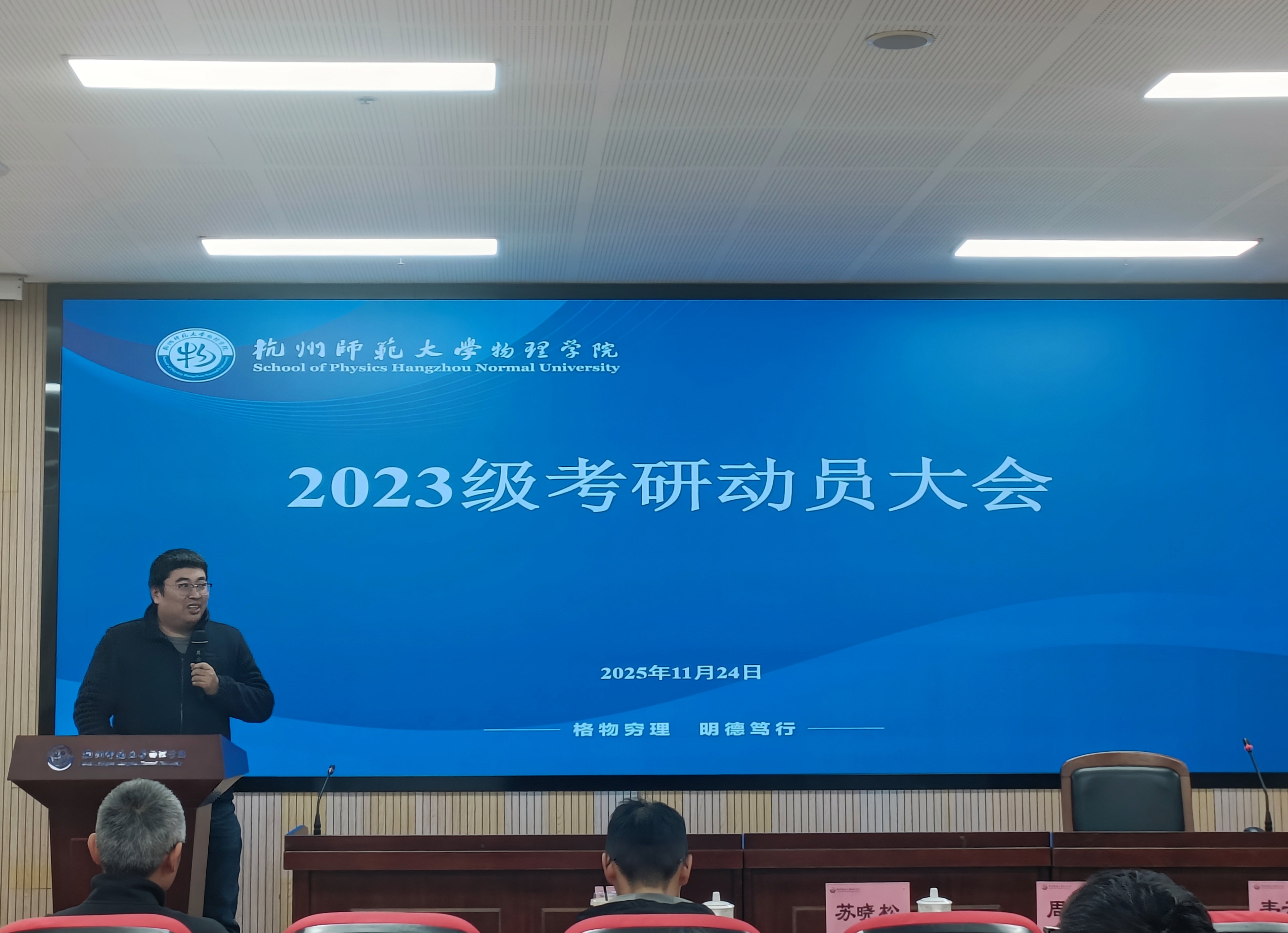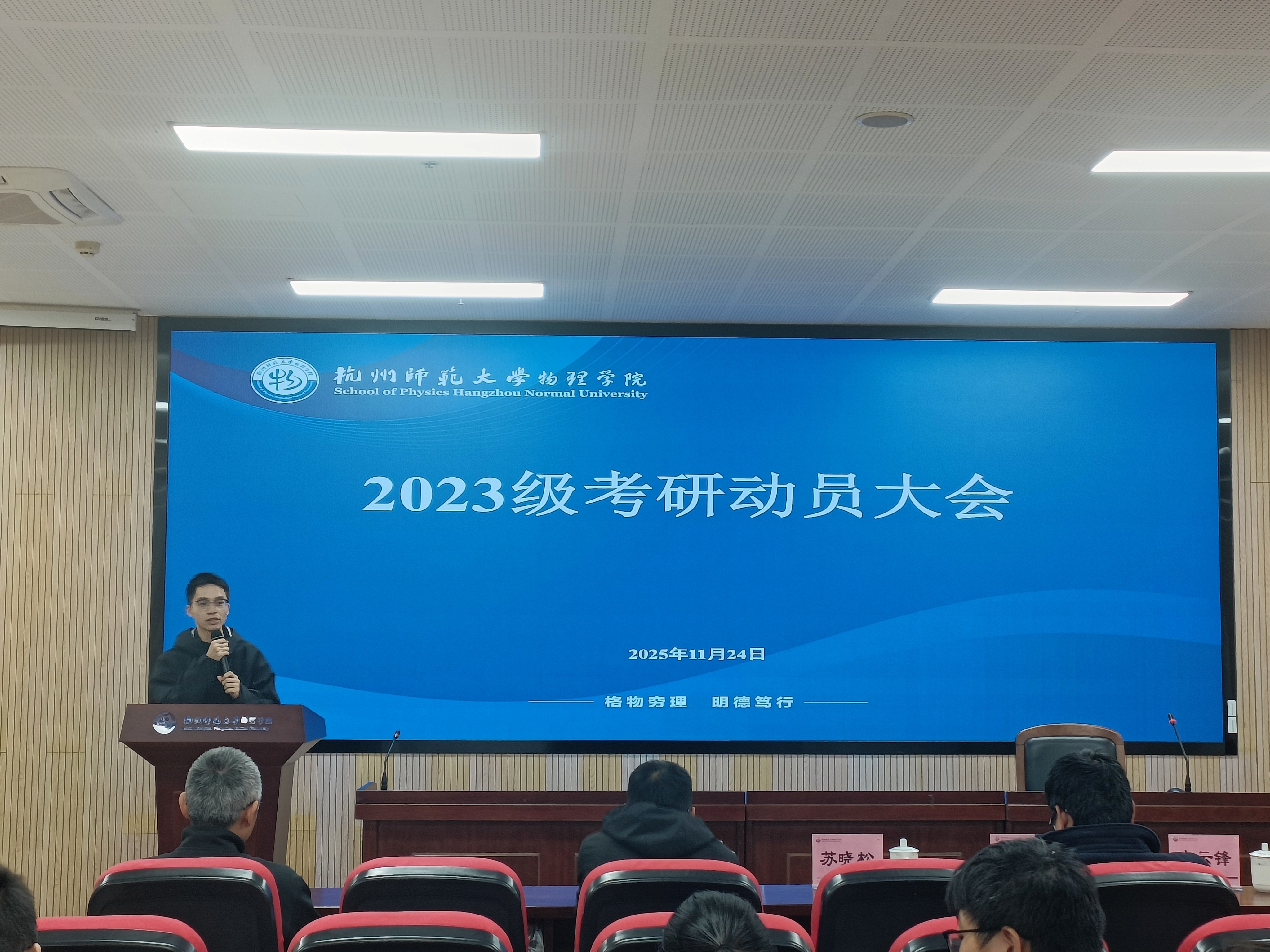 此次动员大会进一步坚定了学院2023级学子的考研信心,也让同学们对当前考研政策与形势有了更清晰的认识。考研不仅是提升专业素养、拓展学术视野的重要途径,更是师范生成就卓越、服务国家教育事业发展的重要途径。相信在学院师生的共同努力下,2023级物理学子定能发奋学习、勇毅前行,续写学院人才培养高质量发展新辉煌!
